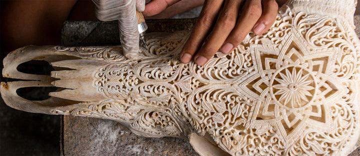 Skull carving is an ancient Balinese tradition rooted in deep respect for the life cycle. Each intricately carved skull celebrates the life of the animal by ensuring nothing goes to waste. At the same time, these masterful works are believed to channel protective energies - safeguarding homes, sacred spaces, and the people within. More than art, they are protectors - crafted with purpose and deep intention.